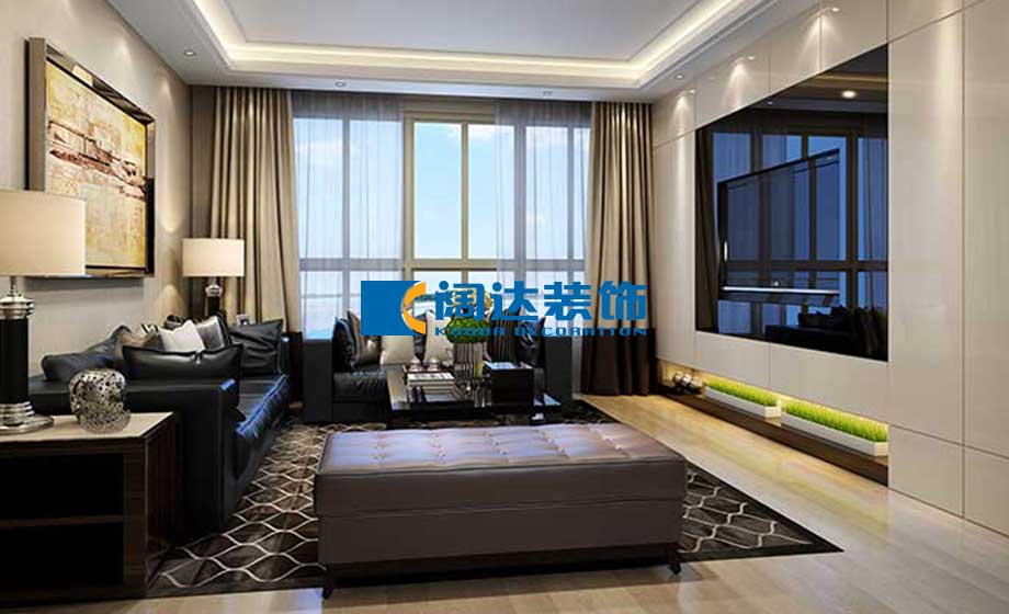 客廳:主要原有電視背景墻凹進一塊,電視墻狹小問題,通過裝飾手段把背景拉伸