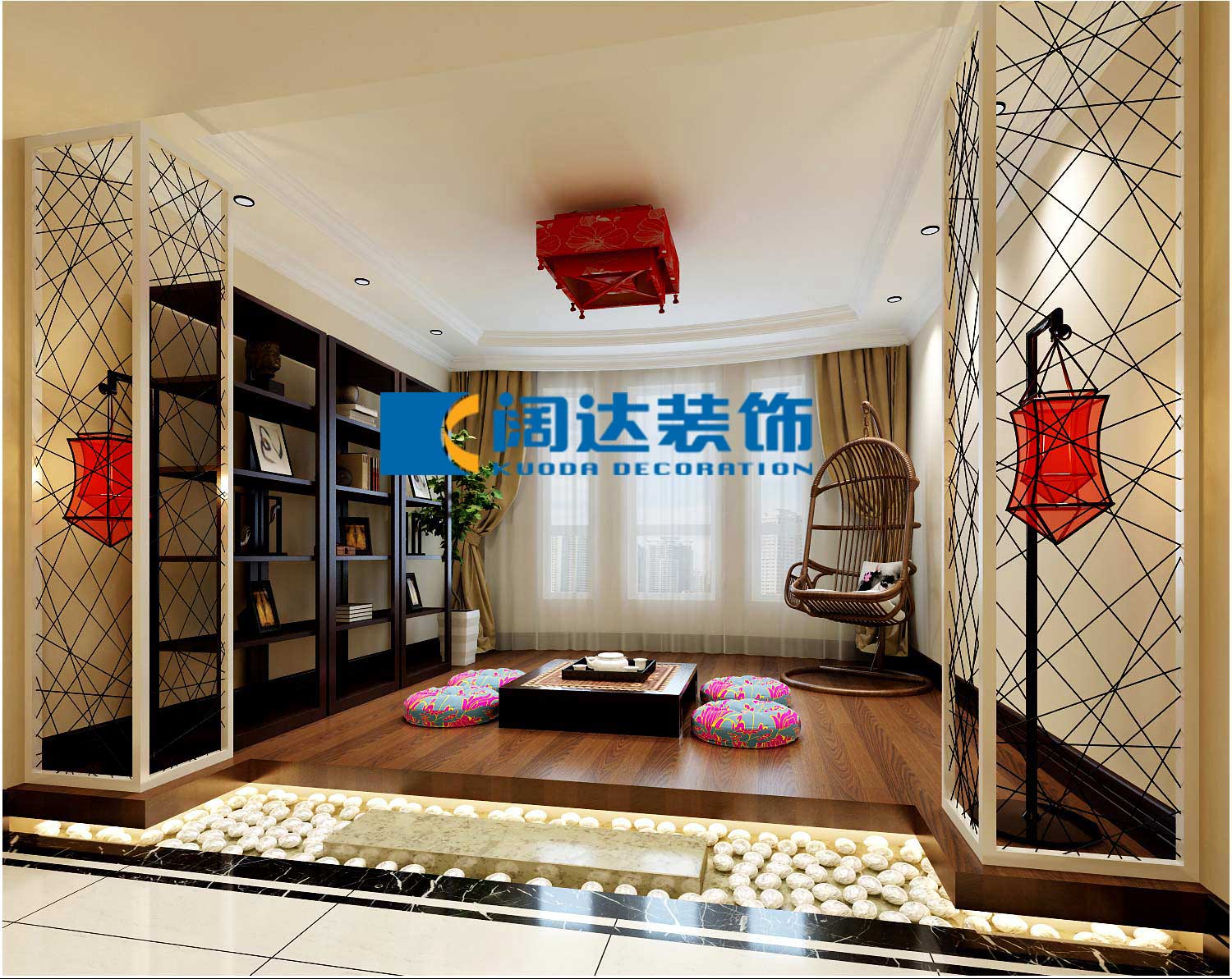 使生活的實用性和對傳統文化的追求同時得到了滿足。背景墻的造型簡潔現代,這種絕妙的組合給人以強烈的視覺意志力,成為時尚與古典的柔媚結合。