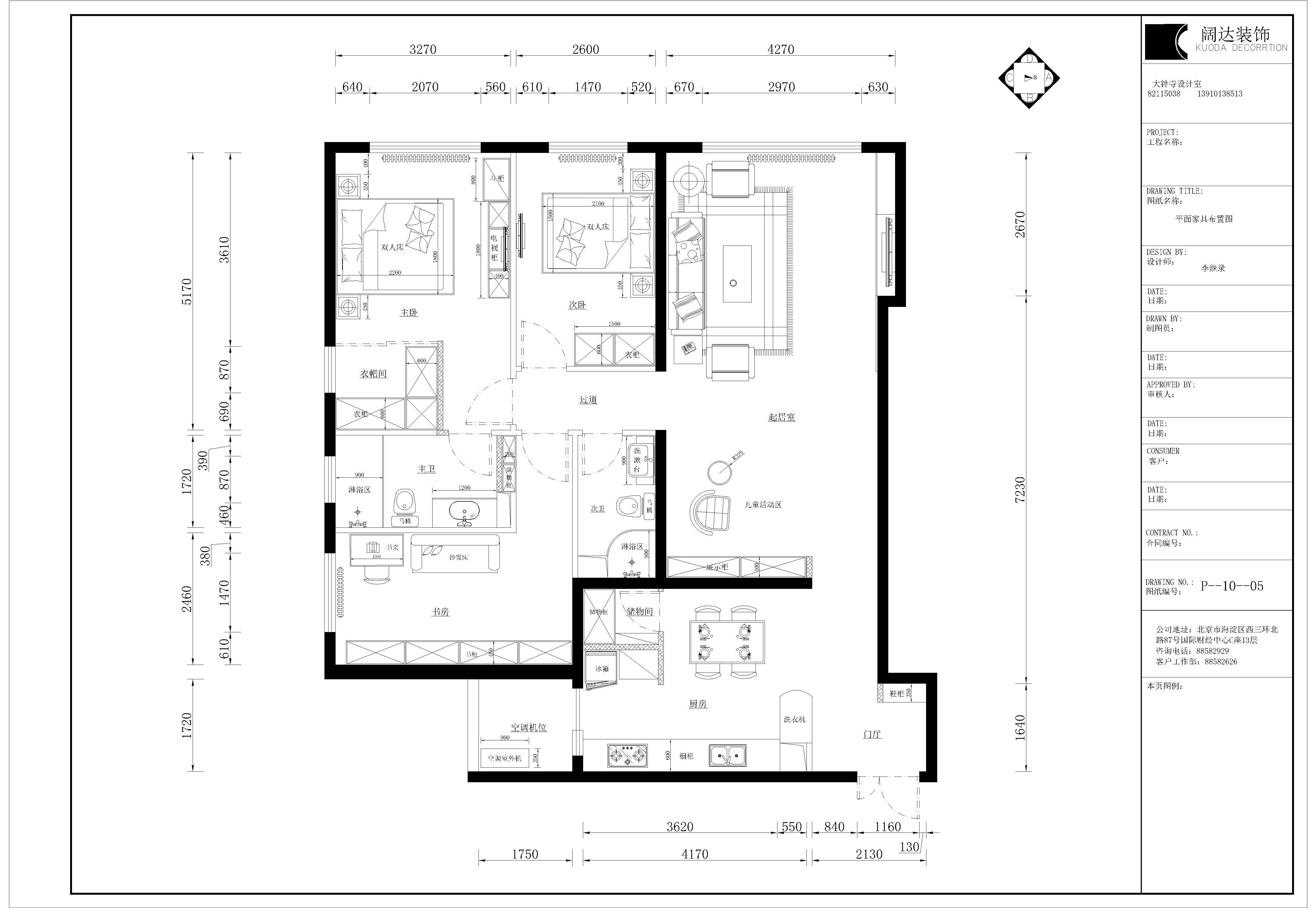 此戶型為三口之家,兩位老人帶孩子,風格定義為現代風格。需要有孩子的活動玩耍空間,所以把起居室分割為會客廳及活動區,而原有就餐區移到原廚房,做一開放式廚房餐廳于一體,獨立的門廳部位,這樣可以更好的區規劃。出現了拆改的項目