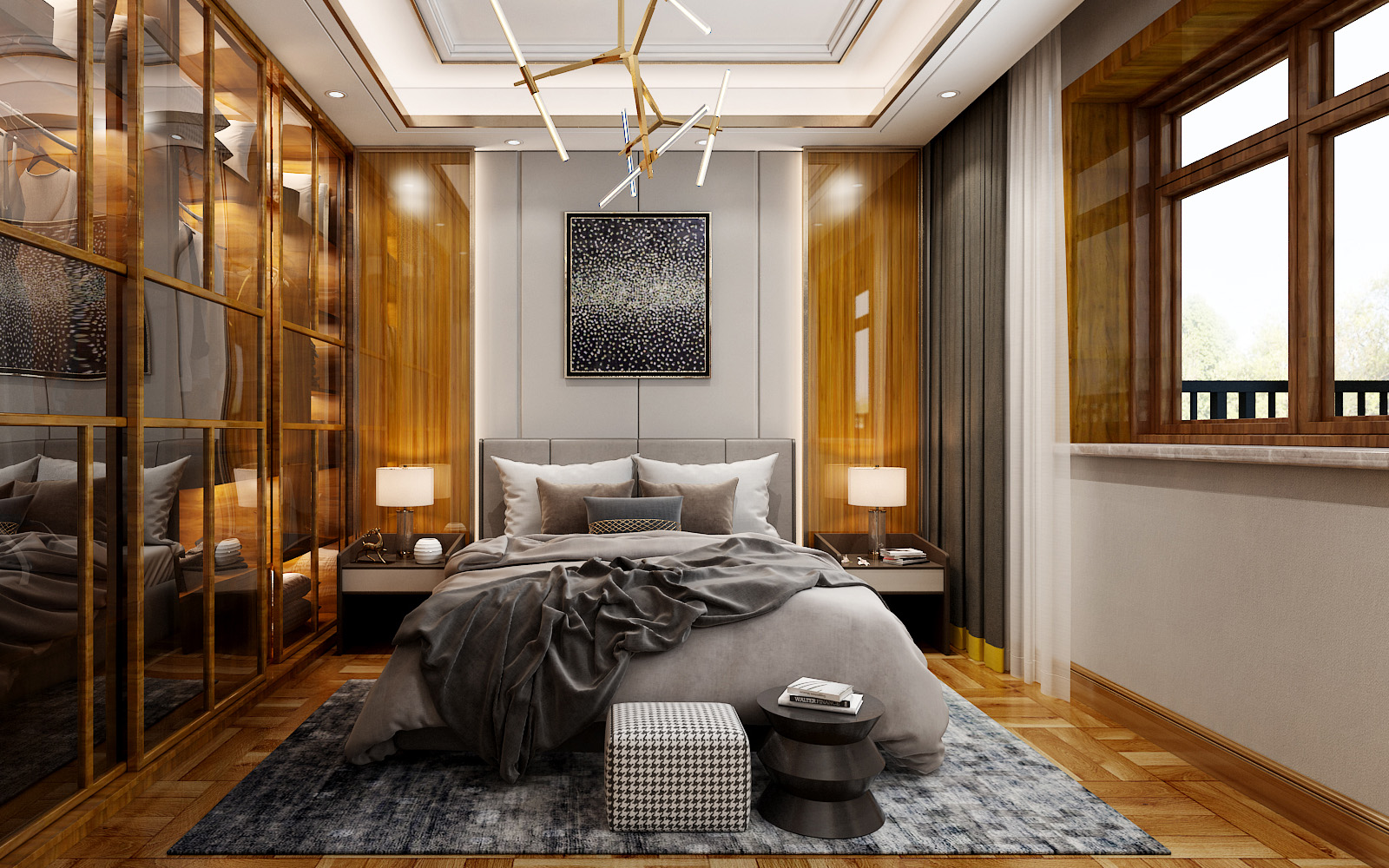 該房子的客廳面積非常大,吊頂造型上,男主人要求造型夸張一些,不要傳統(tǒng)的邊吊,影視墻造型采用傳統(tǒng)的三段式,規(guī)整又不失典雅,中心視角運用中國的水墨元素搭配方形壁燈,更能凸顯新中式的氣質(zhì)。主臥墻面采用素色墻布,增加墻面的肌理感,吊頂線條以中式深咖色實木線條為主,飄窗設(shè)計為休閑飄窗,空閑下來可以喝喝茶、看看書,面積雖小,不失生活的品味。同風(fēng)格案例:更多>>