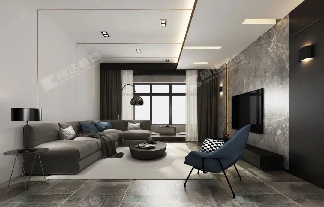客廳與陽臺貫通,增加了空間的開闊感,用多種燈光的配比渲染光影,使得整個空間更加簡潔干凈。