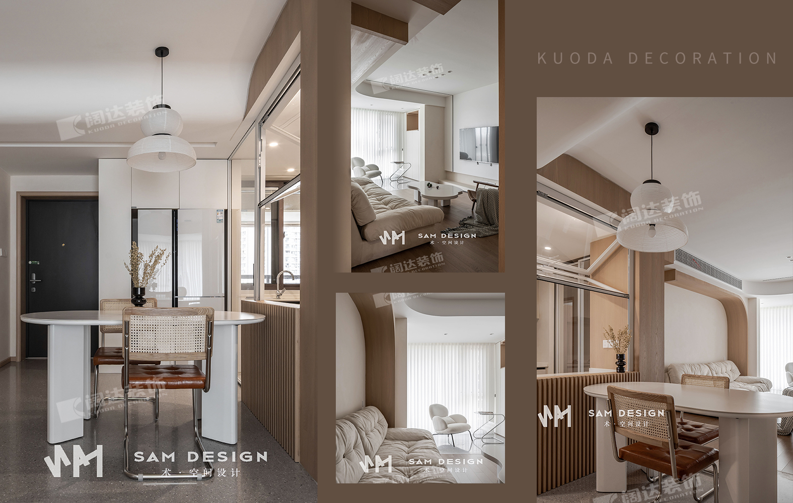 核心亮點:打破空間限制,將客廳、餐廳、廚房融為一體,提升了空間美感及社交趣味。