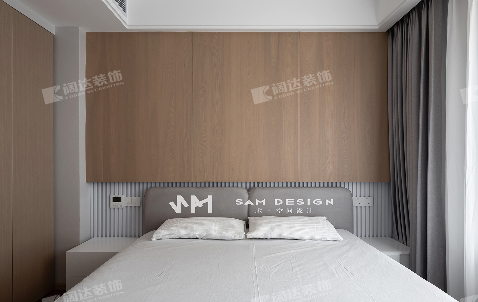 臥室適配于睡眠空間的淺淡色彩,除舒適度以外,夾雜著設計的婉轉。光與氣、觀與感的通透,展現更豐富的空間故事性。