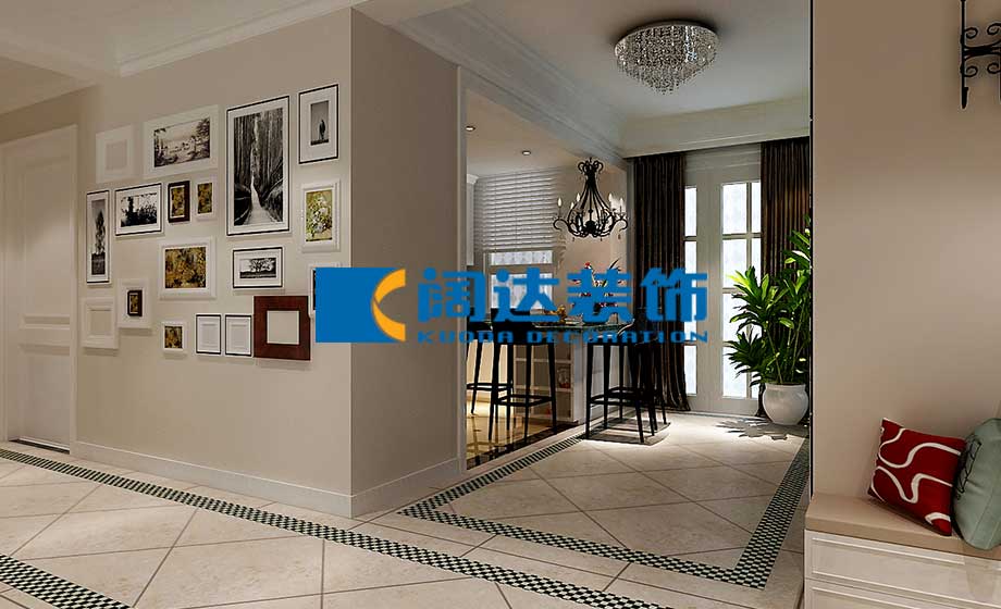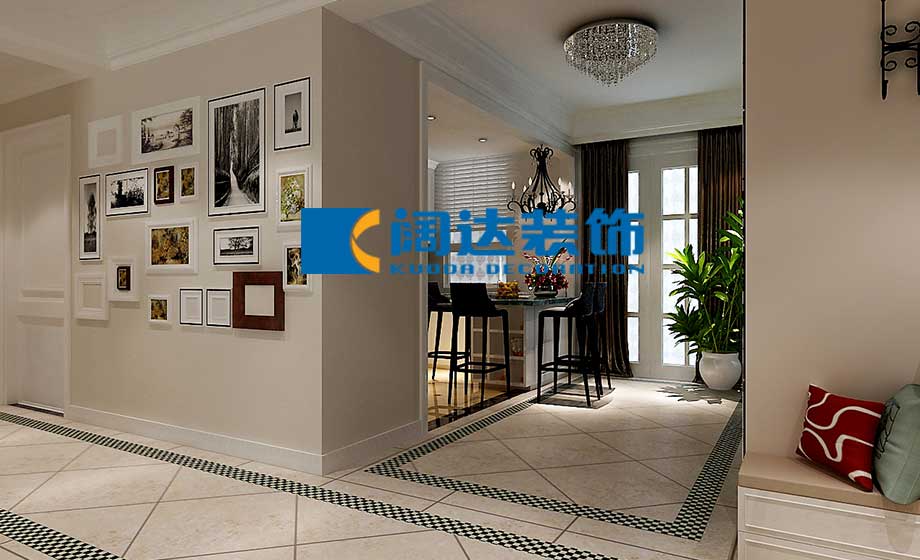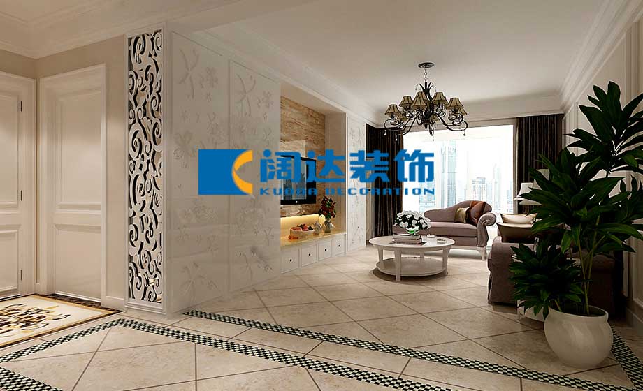 本案的主題思路圍繞簡奢、實用這兩個關鍵詞,目的是為了營造出富有簡奢氛圍的家居空間,可以讓人在這個空間里能夠感受到細致奢華的氛圍,并且簡歐風格在延續歐式奢華的同時舍棄了一些紛繁復雜的造型和光怪陸離的氣息,體現了年輕業主對精致生活的期許。客廳: 簡約之風為主,背景墻運用精致花格和石材的搭配組合,制造出簡奢的電視墻質感,并且充分利用客廳的原有跨度,從原有電視墻起做了一個隱藏式衣柜,再用表面的花格柜門做裝飾,這樣就同時兼顧了實用性和裝飾性。 臥室:簡潔的燈帶造型加之慵懶氣息的軟臥配飾,彰顯溫馨舒適的休憩氛圍。