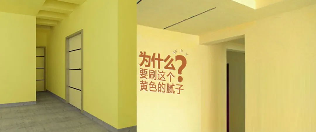 傳統(tǒng)的白色膩子是無法實現(xiàn)對乳膠漆涂刷遍數(shù)和涂刷濃度的自檢功能的。而闊達專利技術之一,黃色墻襯恰恰能實現(xiàn)這一功能。因為如果乳膠漆兌水比例超出標準范圍,在乳膠漆涂刷過程中,油工無論涂刷多少遍,這個黃色的墻襯也是遮蓋不住的,乳膠漆干燥后墻面是花的,一團一團的不規(guī)則的黃色,也就是俗稱的“透底”(見上圖示例)。