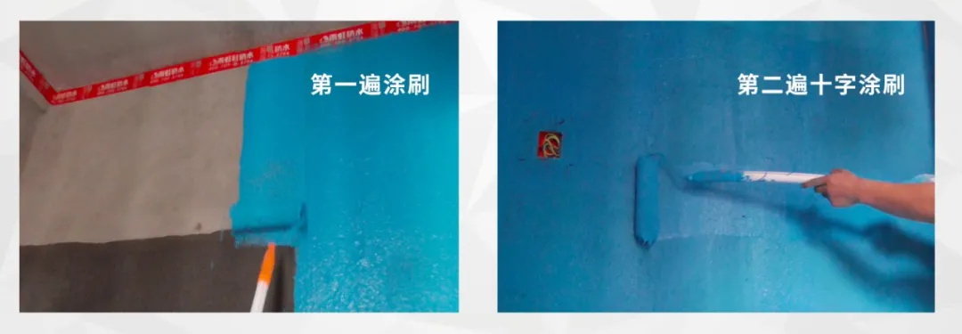 清掃灰漿→鏟平地面(基層過于干燥灑水)→第一遍滾涂→第二遍十字交叉式滾涂覆蓋→完全干燥后閉水試驗→5mm后砂漿保護層